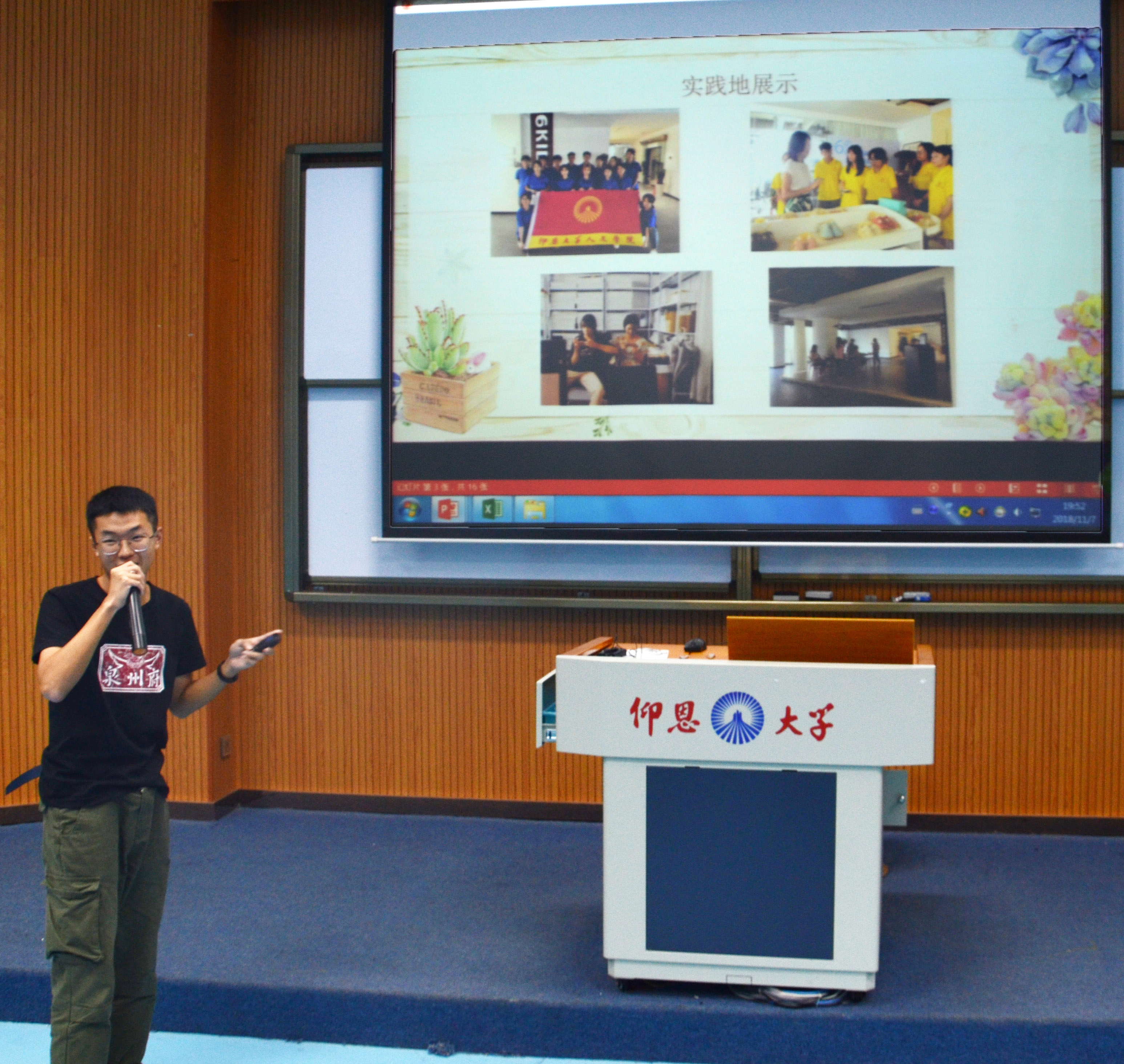 活动现场 朱婷老师首先对本次暑期实践活动做总结报告,汇报了学院取得的成绩,3支队伍获得校级先进团队,2支队伍进入省级先进团队评选,yl7703永利集团获得暑期实践优秀组织单位。同时,让2018级的新生提前了解暑期实践的相关内容,为明年的暑期实践工作做准备。