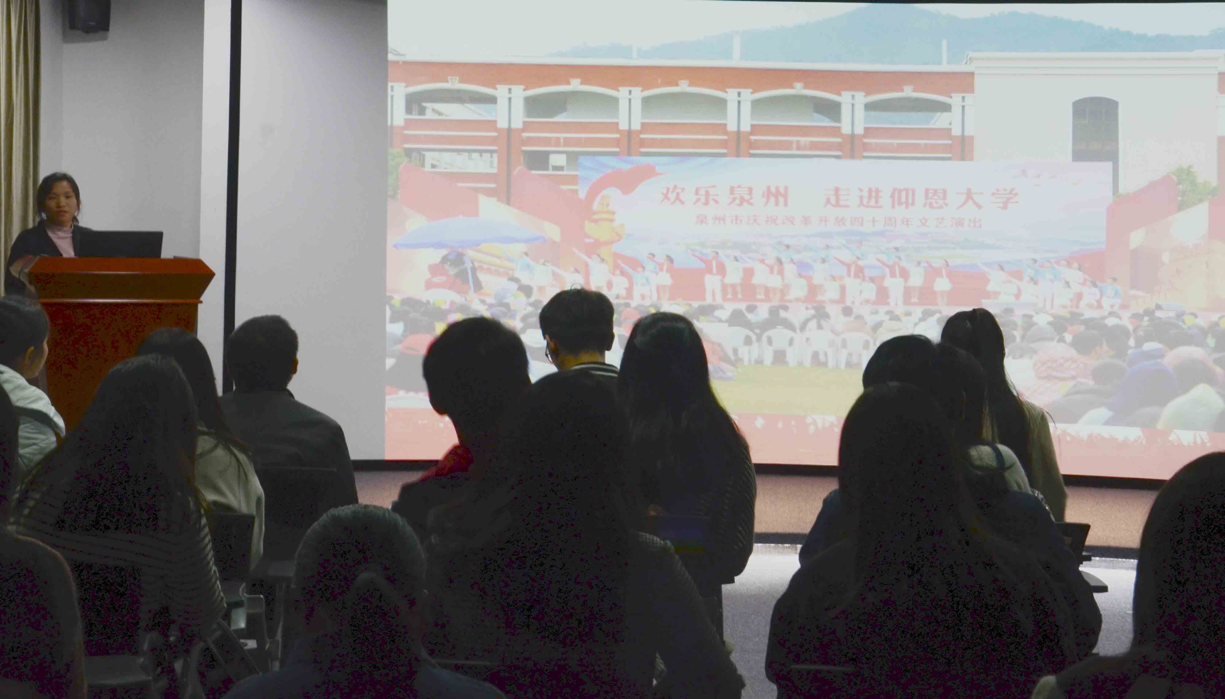 谢博然同学发言 ——记得当年爸爸求学时走的是土路,现在我在厦门读在职研究生,早上坐动车到厦门读书,晚上又坐动车返回泉州,真是太方便;