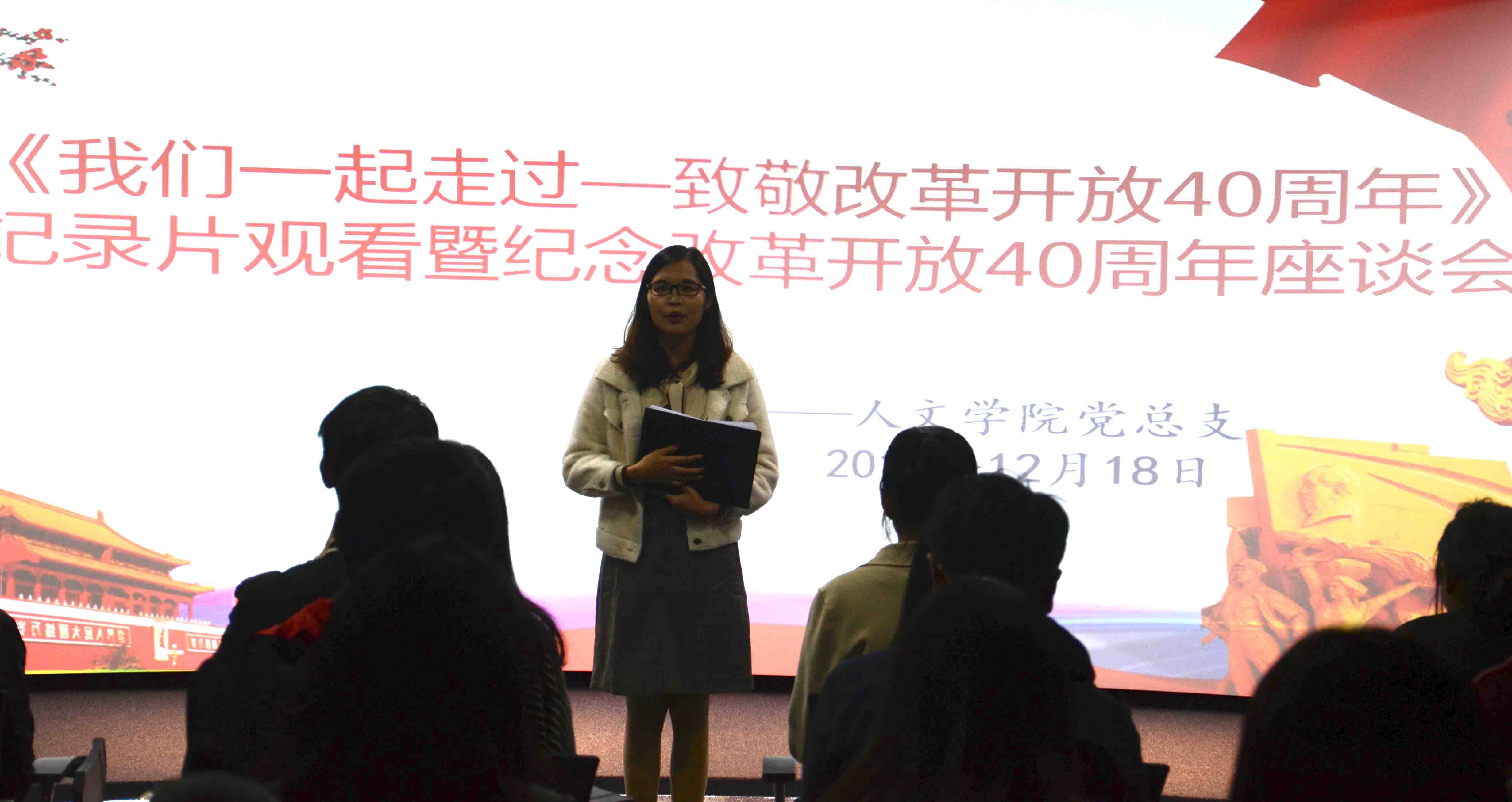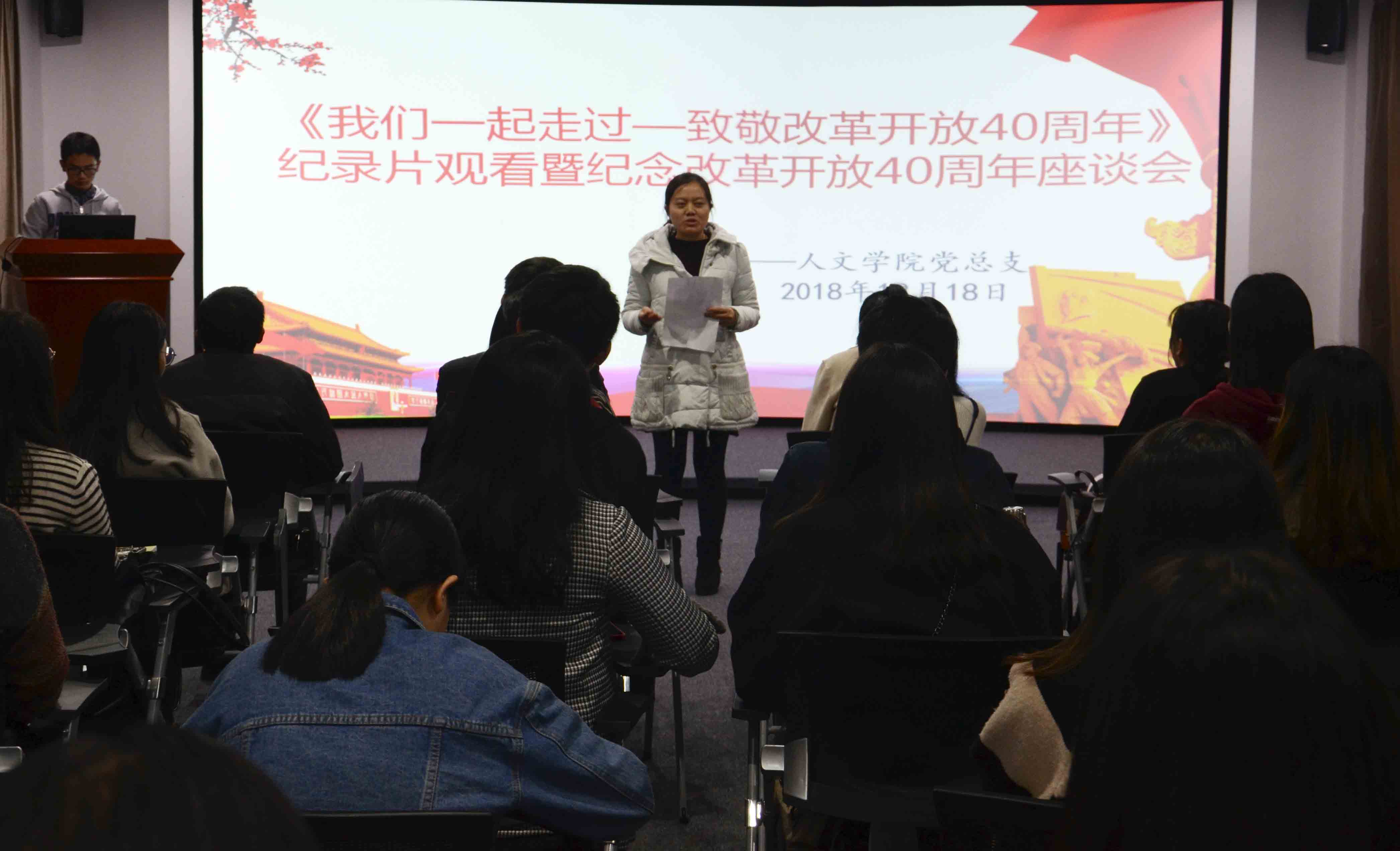 座谈会现场 在座谈会召开之前,党员代表们集中观看了大型纪录片《我们一起走过——致敬改革开放40周年》,座谈会由yl7703永利集团党总支副书记刘巧玫主持。