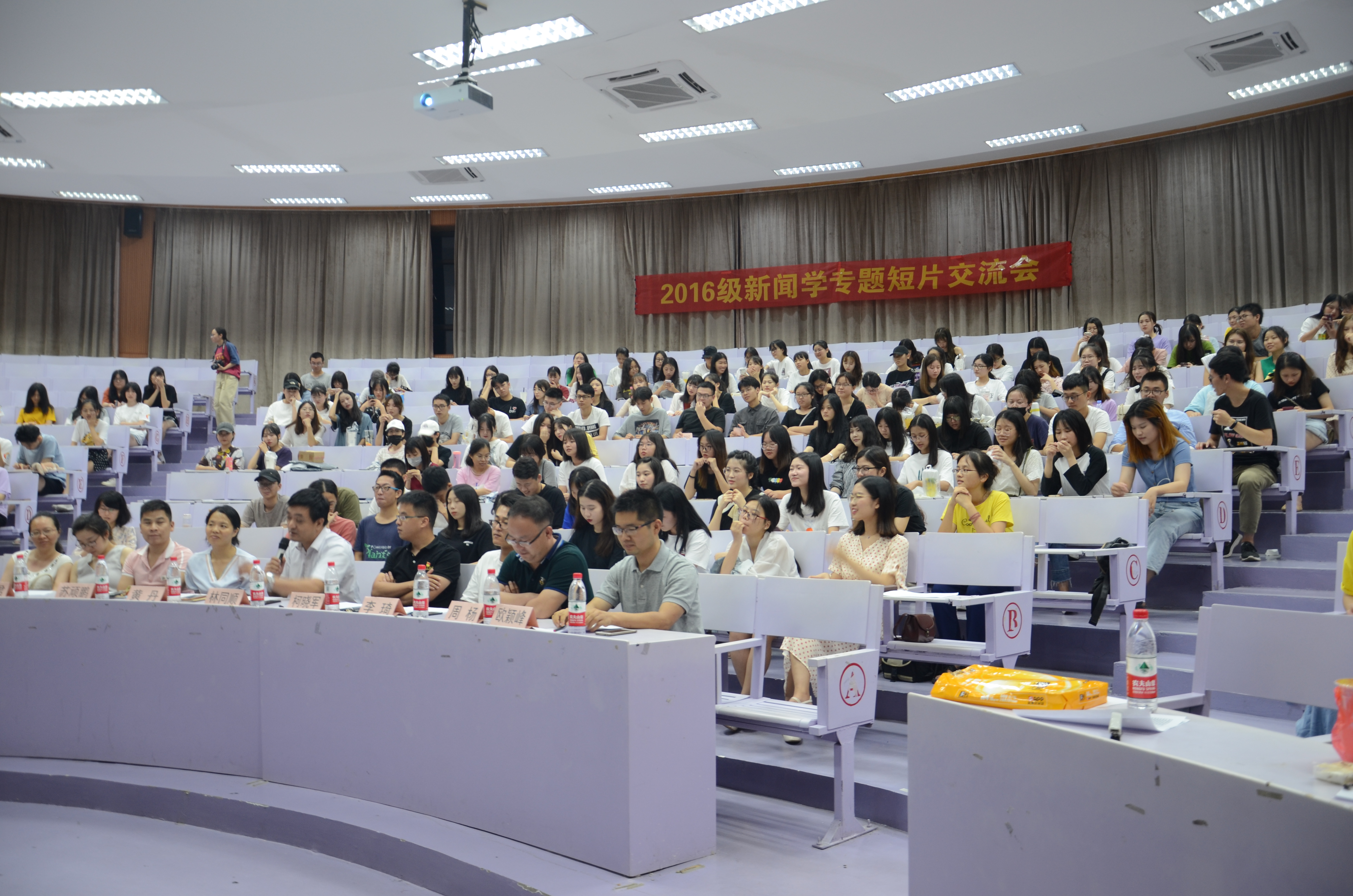 6月21日晚,yl7703永利集团2016级新闻学专题短片交流会在和昌教学楼博雅讲堂举行。金马传媒董事长林同顺及yl7703永利集团新闻系、广告系教师担任本次交流会评委。2016、2017、2018级全体新闻系学生参与观看本次专题短片交流活动。