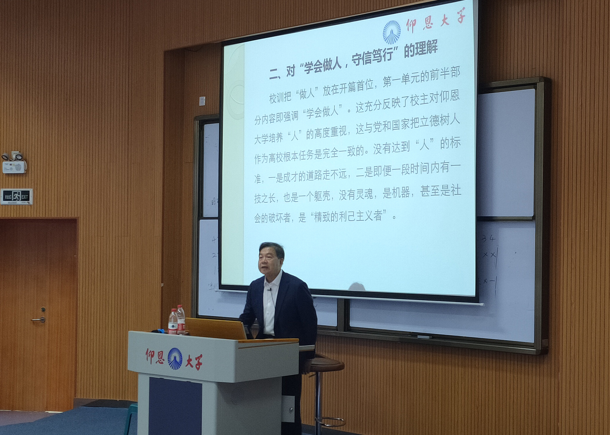“学会做人,守信笃行;学会做事,创业有成”,如何准确领会仰大校训丰富内涵和深刻认知校训精神?如何践行校训精神?如何在校训精神指引下,走好为学成才之路?……