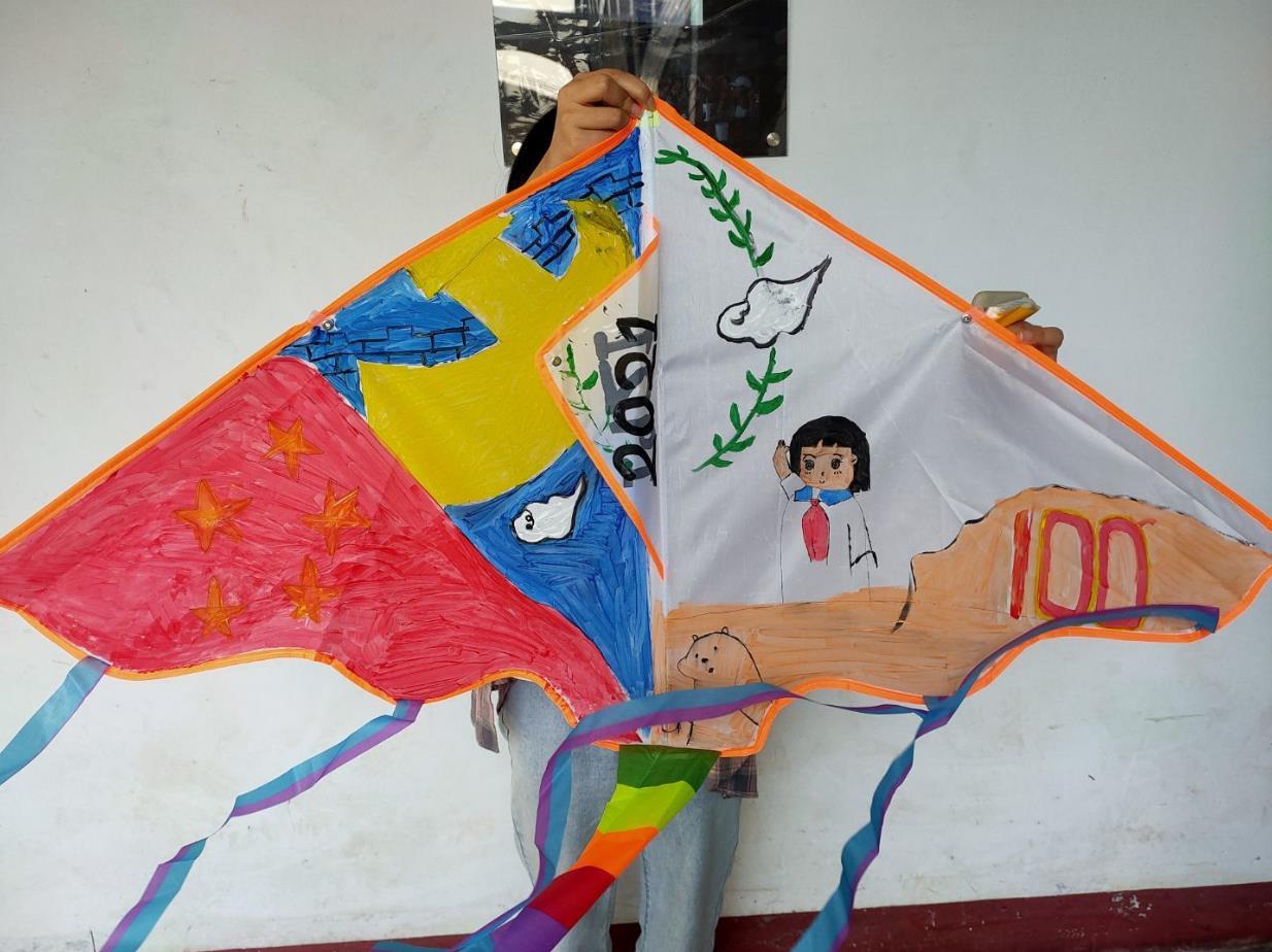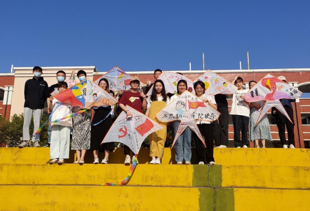 第二个环节是彩绘风筝,在支部书记王君婷老师的带领下,党员同志们亲手绘制风筝,用画笔绘画出对党的情感与美好祝愿,并在绘制完成后与作品合影留念。