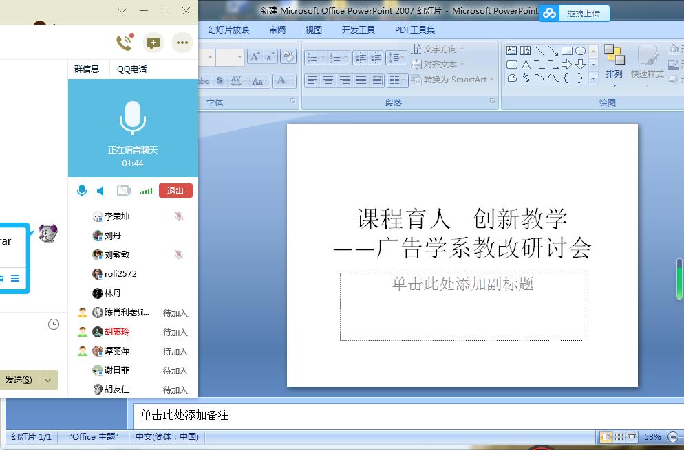10月6日下午,广告学系在系QQ群召开“课程育人 创新教学”线上研讨会,就如何在课程中融入思政元素、创新教学方式等方面的课程设计展开交流,以进一步提升教学质量。