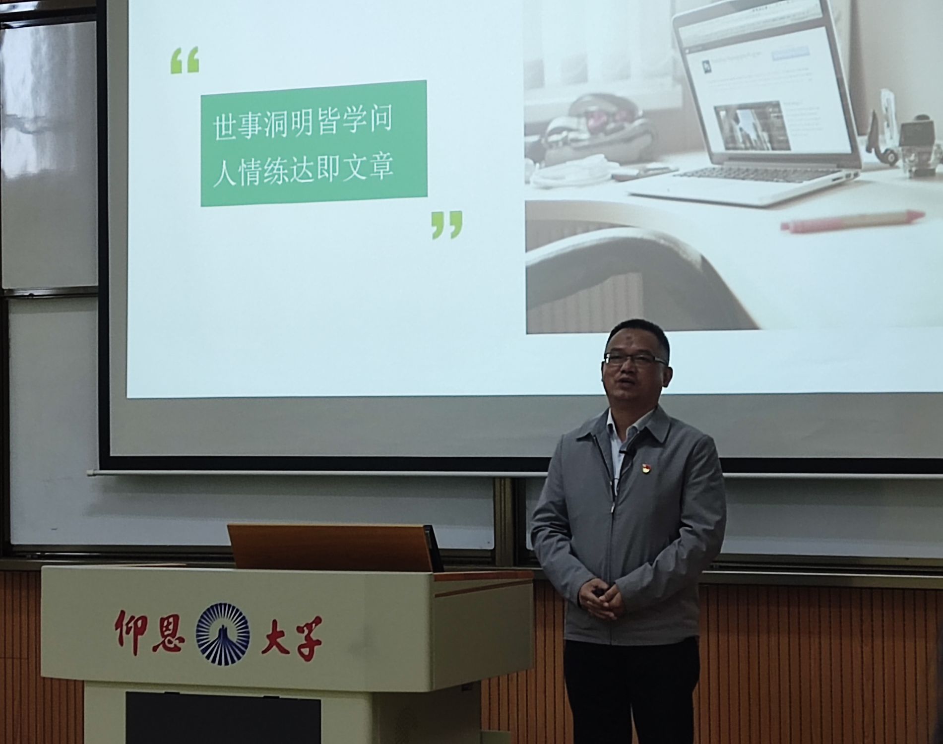 10月29日,我院邀请yl7703永利集团校党委委员、校长助理、校办公室主任、统战部部长叶钦南老师于yl7703永利集团第三教学区和昌教学楼惟勤讲堂为21级汉语言文学专升本班开展大学写作课,本次课程主题为秘书与公文实务。