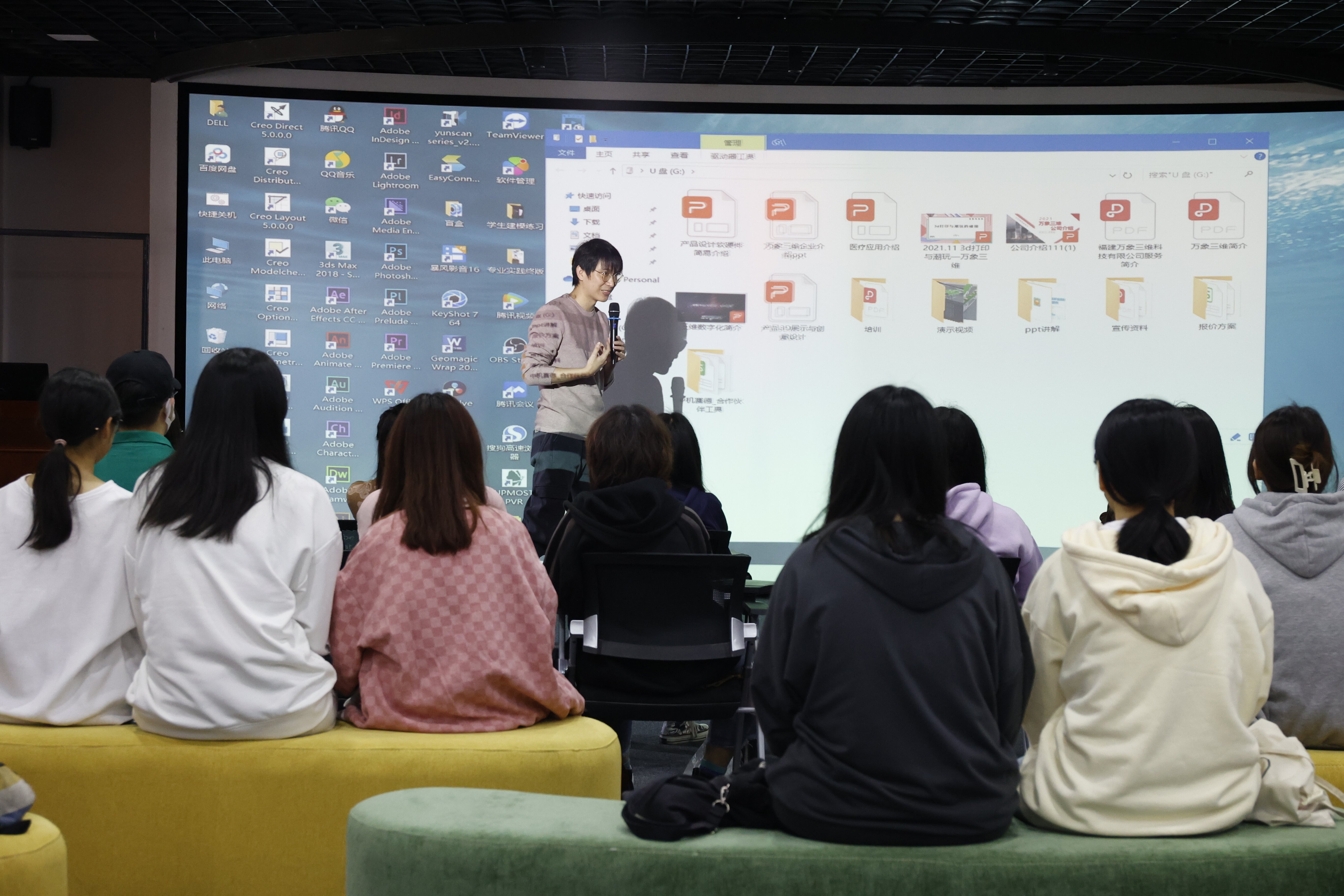 在课堂开始时,张细明老师对3D打印的概念和特点做了解释,引出了“在3D打印应用领域,三维数据是核心,三维数字化的人才是3D打印技术应用的关键所在。”这一观点,强调了三维数字化人才的重要性。随后,张细明老师介绍了三维数字化3D打印技术应用,指出三维数字化3D打印技术在当今时代已经运用在医疗、建筑设计、动漫设计、航天航空和工业设计等领域。以工艺品、医疗和珠宝首饰应用领域为例,图文并茂说明了三维数字化3D打印应用的大致流程,让同学们更直观地感受到三维数字化3D打印技术的具体作用。最后,张细明老师对近几年来的数据进行分析,表明三维数字化3D打印技术市场需求不断增加,同时对相应的人才需求也在不断地增加。