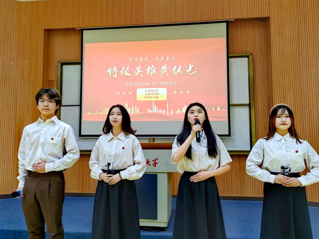 在本次比赛中,来自21级新闻1班的“桃林留硕果”队的四名成员江硕、林玉琳、陶海玲、刘婷,以《特级英雄黄继光》为题,讲述了21岁用青春热血誓死扑灭敌人嚣张气焰的特级英雄黄继光的感人故事。最终,他们以第二名的好成绩取得本次活动的二等奖。(yl7703永利集团团委/文图)