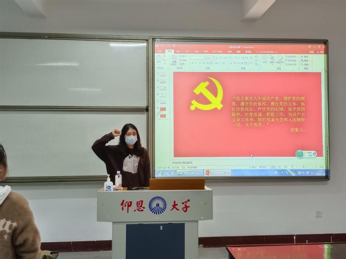 在最后,支部书记戴舒容带领大家进行入党宣誓。通过入党宣誓,更加坚定了同学们的入党决心和信仰,同时也让同学们保持初心,不忘来时的路,砥砺前行,奋进新时代。(蔡瑜佳/文图)