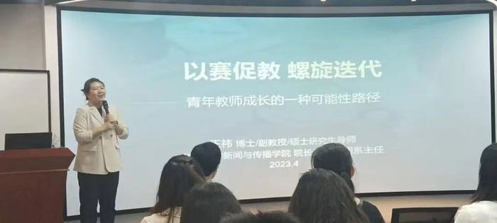 为深入学习贯彻党的二十大精神,进一步深化“三教”改革,全面提升我院教师教学能力水平,4月27日下午,我院邀请华侨大学新闻与传播学院王祎副教授于第三教学区普照楼231A弧形展厅为全体青年教师开展教学竞赛专题讲座。