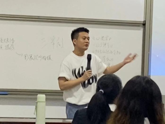 为进一步提高学生的专业素养拓展学生的创作思维,4月12日下午,我院特邀厦门达愉文化总经理、即兴之作影业创始人——陈森辉老师为23级新闻学专升本班级讲授《剧本与分镜头脚本创作》课程。