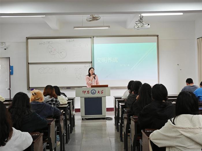 4 月18日下午,为切实提高学生的文明礼仪水平,培养学生高尚的道德情操,理解、宽容、谦让、诚实的待人态度和庄重大方、热情友好、谈吐文明、讲究文明的行为举止,构建和谐校园。我院联合致远书院开展以“规范行为成习惯,素质养成促成长”为主题的文明养成教育活动,让同学们切实学习并践行文明行为。