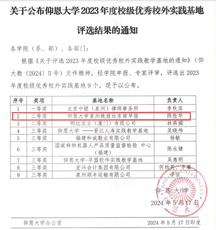 祝贺!新闻传播系实践基地获得校级优秀校外实践基地二等奖