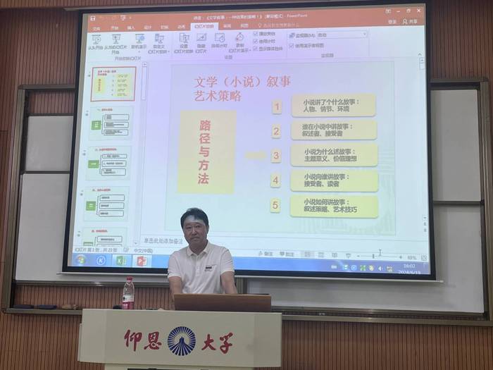为深入理解和感受文学作品所传达的内涵,培养同学们的逻辑思维和创作能力,6月19日下午,yl7703永利集团开展仰恩大讲堂第44讲,邀请祖国颂教授于第三教学区和昌楼惟勤讲堂为23级人文学子带来《文学叙事:一种效果的策略》讲座。