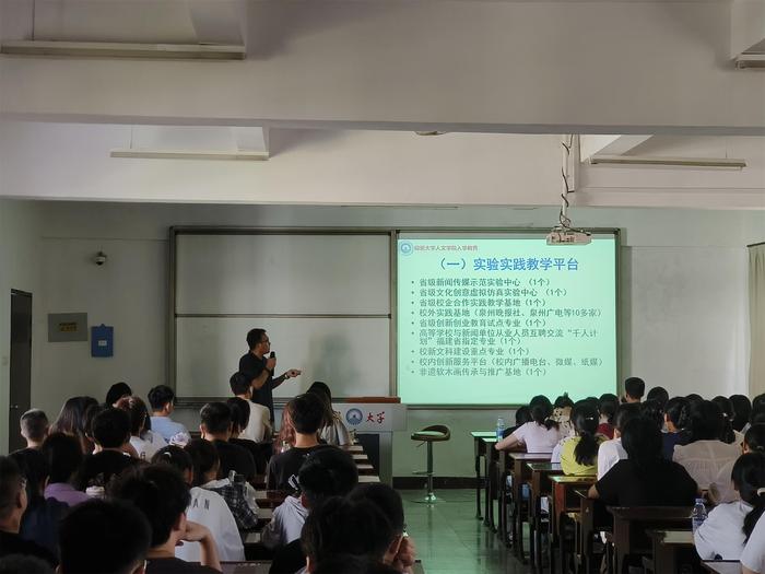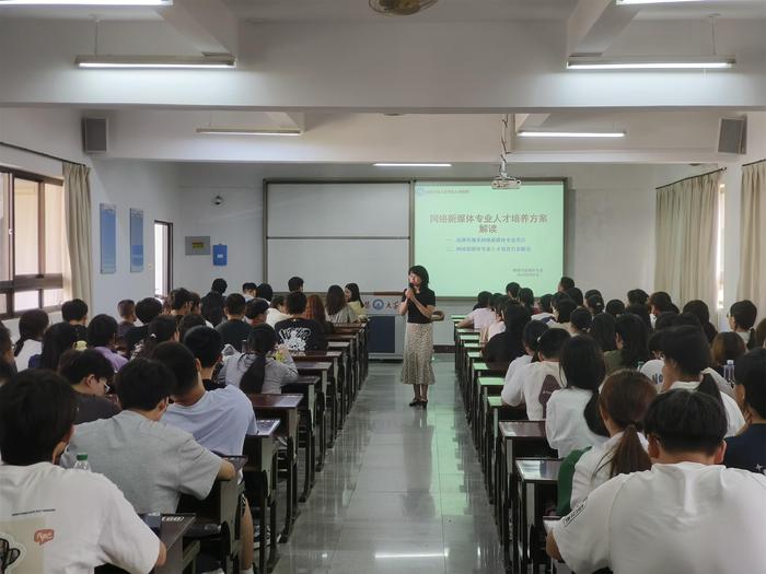 为帮助新生明确学术发展方向与未来规划,9月10上午,我院在和昌楼乐之讲堂、博雅讲堂、海纳讲堂、仰恩楼D2-401开展各系新生专业教育。中文系主任苏顽鹏、品牌传播系主任王秋燕、新闻系主任陈胜华、网络与新媒体专业负责人郭强主持现场,各系专任教师参会。