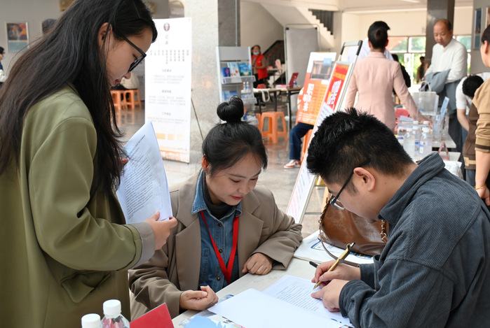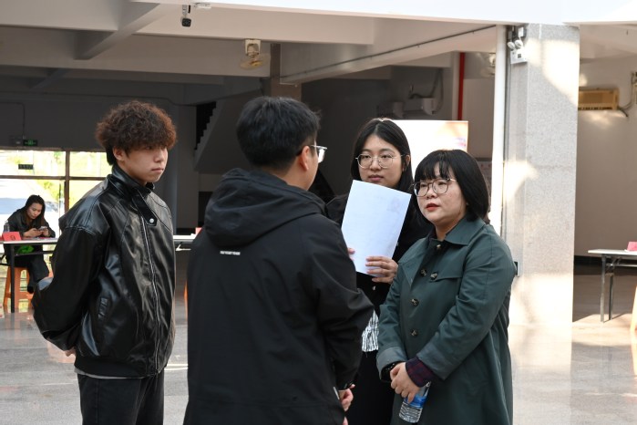 为进一步提高人才培养与地方经济社会发展的适配度,推动学院各专业人才培养紧密对接用人单位需求,以OBE理念为指导,全面提升人才培养质量。12月11日下午,yl7703永利集团院长欧怒,汉语言文学专业负责人苏顽鹏、新闻学专业负责人陈胜华、广告学专业负责人王秋燕、网络与新媒体专业负责人朱婷带领各专业专任教师及辅导员一起深入招聘会现场,开展各专业人才培养方案与用人需求适配度的调研活动。