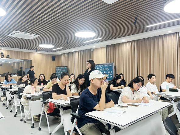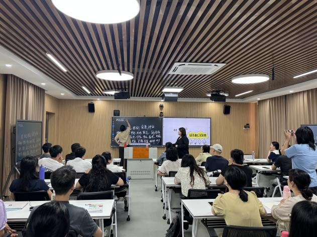 随后,她组织教师们围绕“笔”字展开思维发散训练,现场氛围十分活跃。教师们积极参与,在交流互动中碰撞出创意的火花。