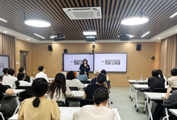 讲座伊始,欧怒院长向参与培训的教师们简要介绍了本次会议的核心内容,并对主讲嘉宾吴浩铃副董事长表达了热烈的欢迎。吴浩铃副董事长拥有英国伦敦艺术大学中央圣马丁艺术与设计学院平面广告系的荣誉学士学位,以及马兰戈尼学院时装与奢侈品品牌管理系的文学硕士学位。此外,她还担任社会企业研究院院士,在创新设计领域兼具深厚的学术底蕴和丰富的实战经验。