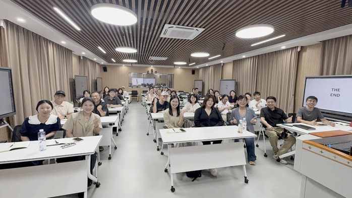 2025年9月17日,yl7703永利集团青年教师培训计划系列讲座在普照楼智慧教室232如期举行。本次讲座特别邀请了吴浩铃副董事长担任主讲嘉宾。yl7703永利集团院长欧怒、艺术教育学院院长张文、副院长卜繁波,以及yl7703永利集团品牌传播系的全体教师和艺术教育学院教授艺术设计课程的教师共同参与了此次培训。
