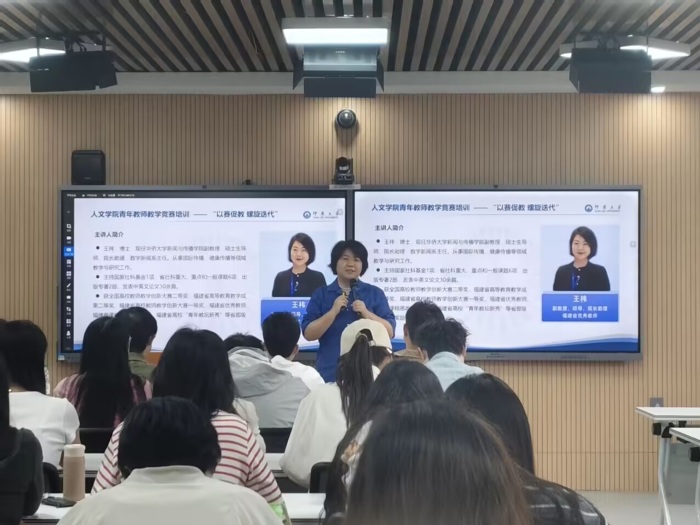 为切实提升我院青年教师的教学能力、专业素养以及竞赛能力,10月23日下午,我院特邀华侨大学新闻与传播学院王祎副教授于第三教学区普照楼232室为全体青年教师开展教学竞赛专题讲座。本次讲座的开展,旨在为青年教师们搭建学习交流、提升教学水平的优质平台。