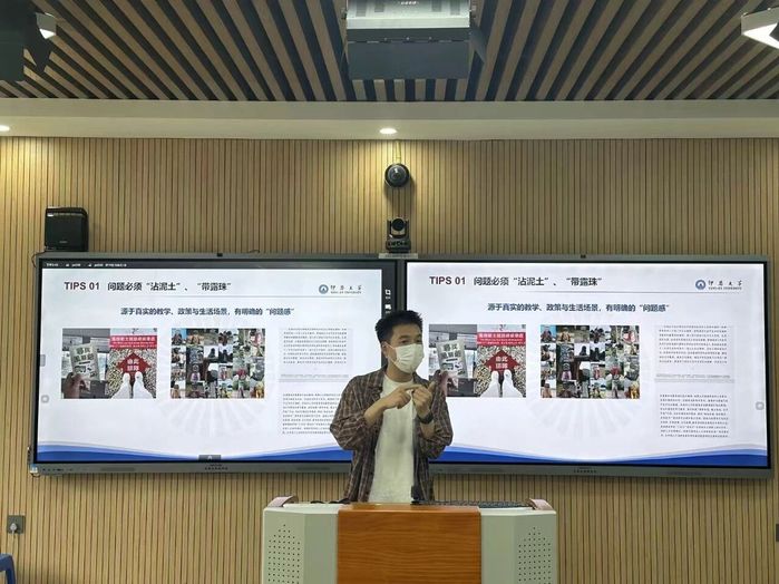 分享会上,林丹老师首先结合自身申报校级课题的实践经验,以《“课程思政”理念下平面广告设计课程教学路径》这一成功案例为线索,进行了系统性的分享。她详细梳理了从选题到申报的全流程:在选题策略上,强调应立足“小而精”的原则,紧密结合个人所授课程与学校发展需求,并从日常教学痛点中提炼真问题;在申报书撰写上,则重点讲解了如何制定明确的研究计划、精准提炼创新点以及有效展示研究基础。她的讲解深入浅出,逻辑清晰,为老师们厘清了申报思路。