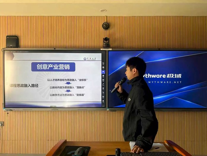 叶任豪老师提出,课程思政建设应构建一个清晰的逻辑体系。他将其路径概括为三点:以人才培养目标为思政融入的“坐标系”,以教材内容为思政融入的“落脚点”,以教学方法为思政融入的“助推器”。他直言课程思政绝非专业教学的“附加题”,而是与专业培养目标同频共振的“必答题”。在教学中,他自觉将课程理论与“文化强国”、“数字中国”等国家战略相结合,以此塑造学生的专业使命感。在教学方法上,他采用“案例教学为主、自我探索驱动、多元评价兜底”的模式,推动思政认知向行动自觉转化,鼓励学生主动分析传统文化IP的现代化转型,在实践中深化对产业规律与国家战略的理解。