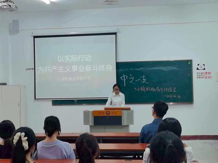 为强化入党积极分子思想政治素养与责任担当,引导入党积极分子坚定理想信念、端正入党动机,2026年4月14日下午,中国语言文学系学生第一党支部于祥贤楼204教室召开第54期入党积极分子讨论会。支部副书记黄炳琪主持本次会议。